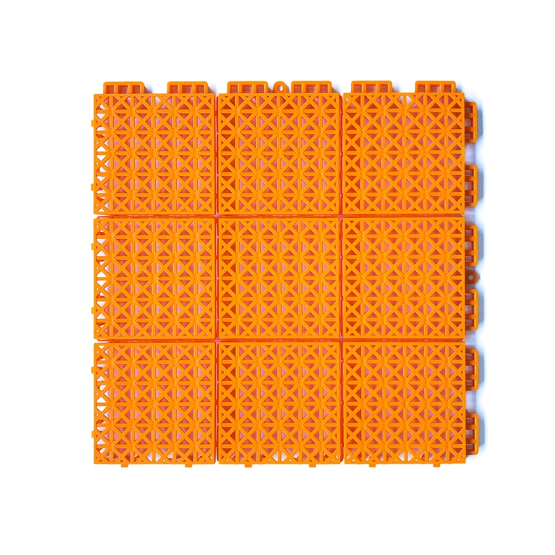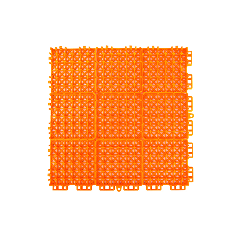 软连接结构,缓解热胀冷缩,对地面平整性较差的地面有较好的包容作用,米字结构支撑有利,满足大多数运动所需。
